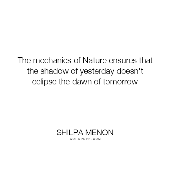 The mechanics of Nature ensures that the shadow of yesterday doesn't eclipse the dawn of tomorrow