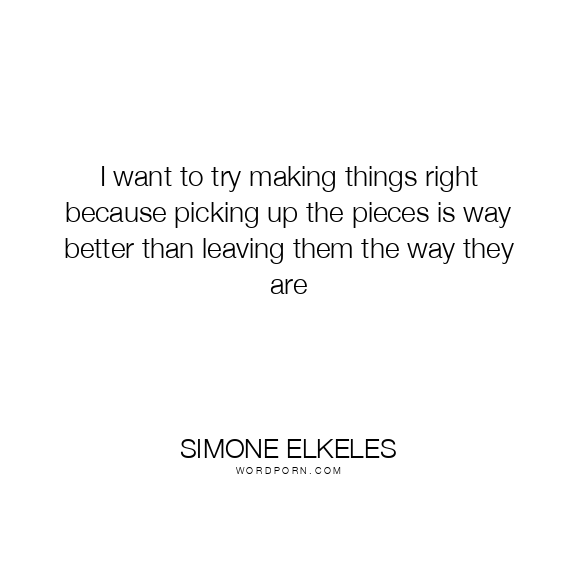 I want to try making things right because picking up the pieces is way better than leaving them the way they are