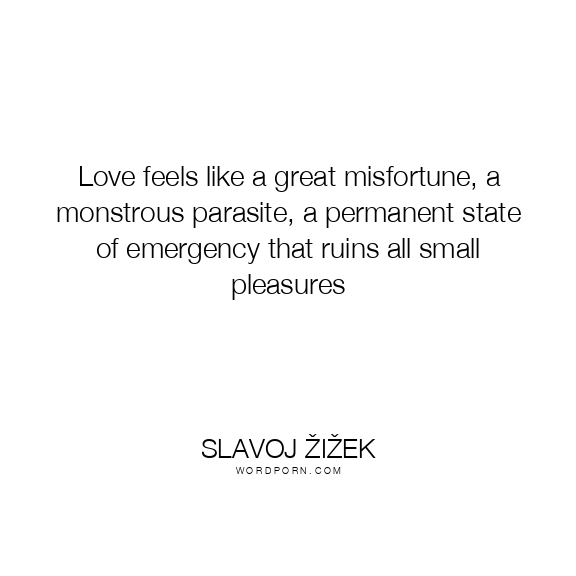 Love feels like a great misfortune, a monstrous parasite, a permanent state of emergency that ruins all small pleasures