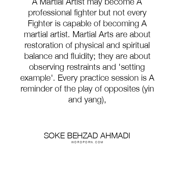 A Martial Artist may become A professional fighter but not every Fighter is capable of becoming A martial artist. Martial Arts are about restoration of physical and spiritual balance and fluidity; they are about observing restraints and 'setting example'. Every practice session is A reminder of the play of opposites (yin and yang),