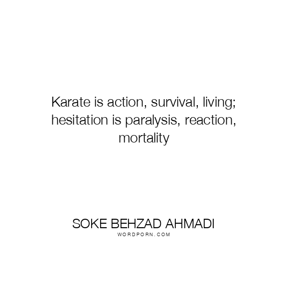 Karate is action, survival, living; hesitation is paralysis, reaction, mortality