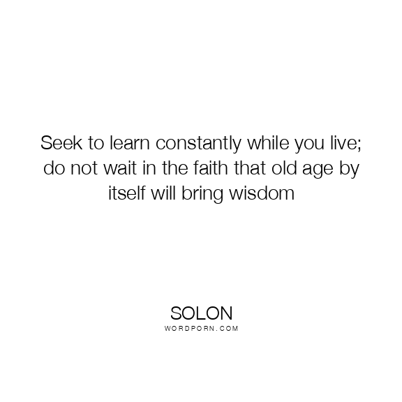 Seek to learn constantly while you live; do not wait in the faith that old age by itself will bring wisdom