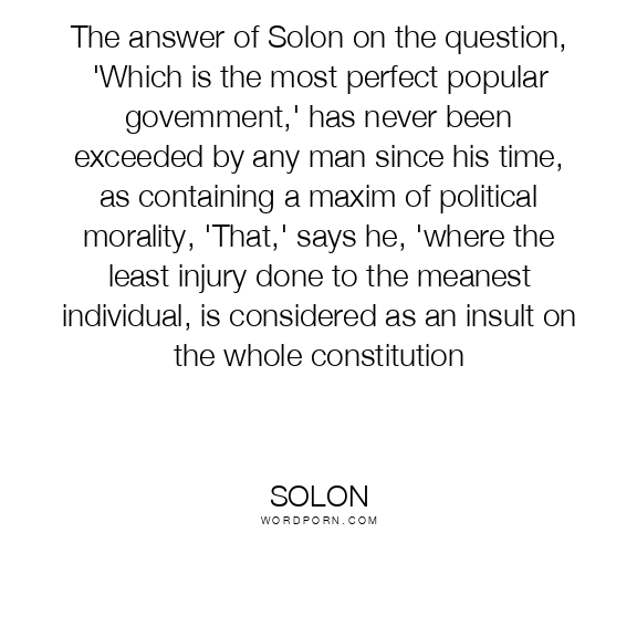 The answer of Solon on the question, 'Which is the most perfect popular govemment,' has never been exceeded by any man since his time, as containing a maxim of political morality, 'That,' says he, 'where the least injury done to the meanest individual, is considered as an insult on the whole constitution