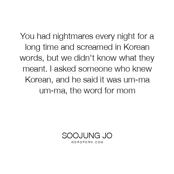 You had nightmares every night for a long time and screamed in Korean words, but we didn't know what they meant. I asked someone who knew Korean, and he said it was um-ma um-ma, the word for mom