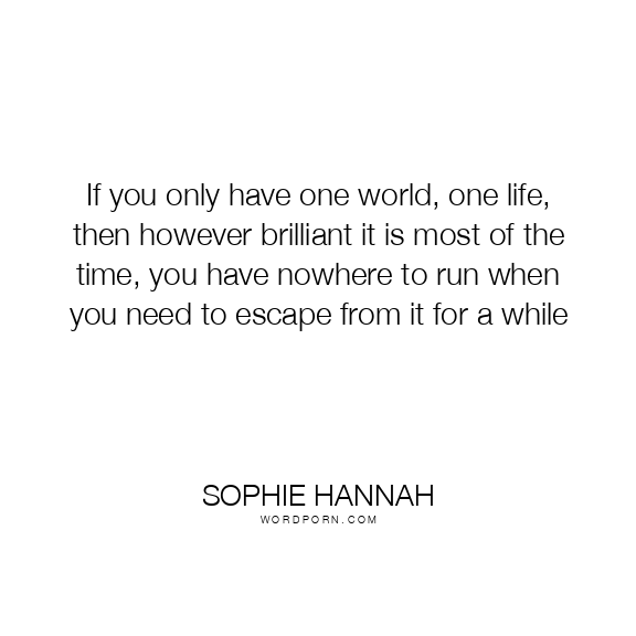 If you only have one world, one life, then however brilliant it is most of the time, you have nowhere to run when you need to escape from it for a while