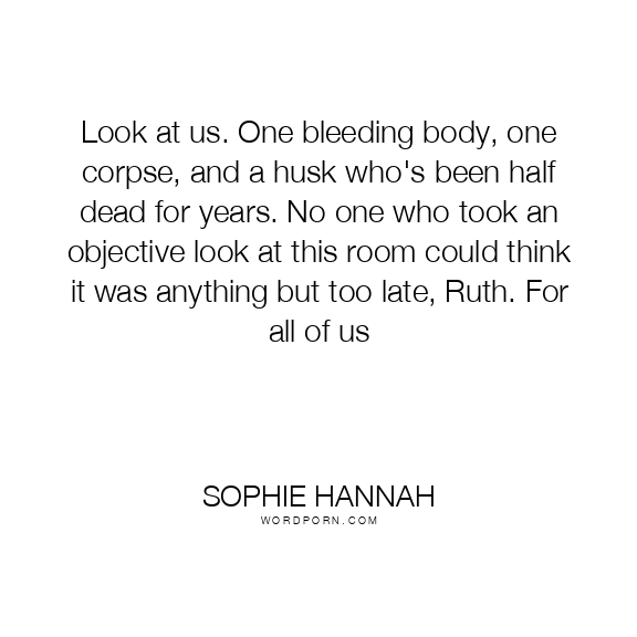 Look at us. One bleeding body, one corpse, and a husk who's been half dead for years. No one who took an objective look at this room could think it was anything but too late, Ruth. For all of us