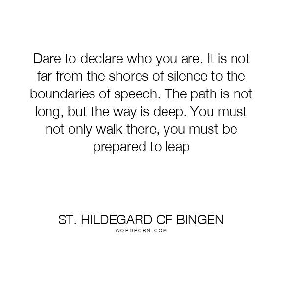 Dare to declare who you are. It is not far from the shores of silence to the boundaries of speech. The path is not long, but the way is deep. You must not only walk there, you must be prepared to leap