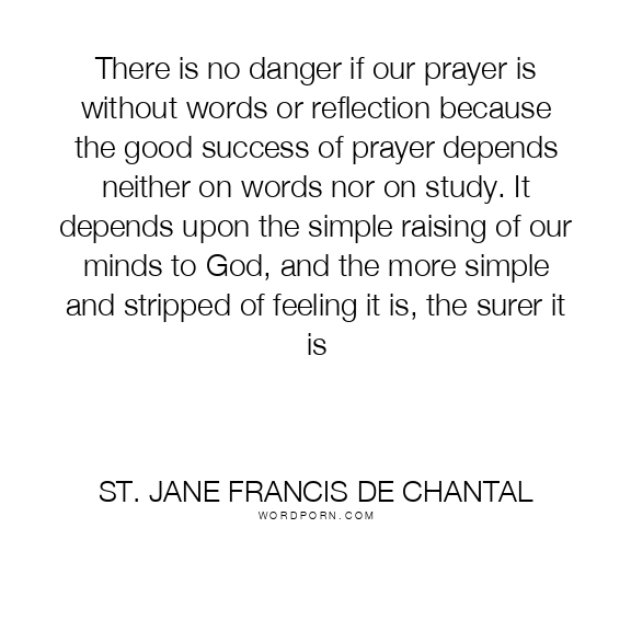 There is no danger if our prayer is without words or reflection because the good success of prayer depends neither on words nor on study. It depends upon the simple raising of our minds to God, and the more simple and stripped of feeling it is, the surer it is