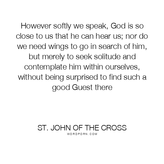 However softly we speak, God is so close to us that he can hear us; nor do we need wings to go in search of him, but merely to seek solitude and contemplate him within ourselves, without being surprised to find such a good Guest there