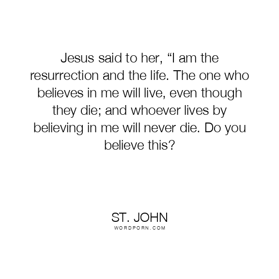 Jesus said to her, “I am the resurrection and the life. The one who believes in me will live, even though they die; and whoever lives by believing in me will never die. Do you believe this?