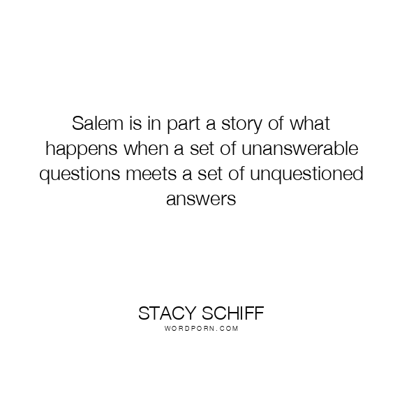 Salem is in part a story of what happens when a set of unanswerable questions meets a set of unquestioned answers