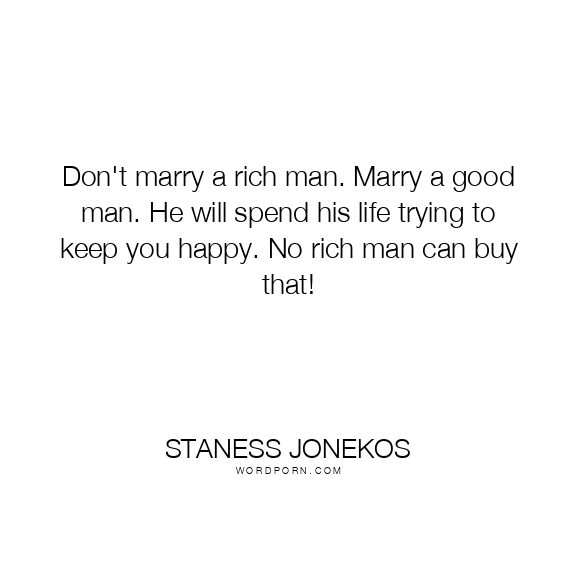 Don't marry a rich man. Marry a good man. He will spend his life trying to keep you happy. No rich man can buy that!