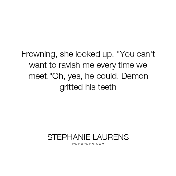 Frowning, she looked up. "You can't want to ravish me every time we meet."Oh, yes, he could. Demon gritted his teeth
