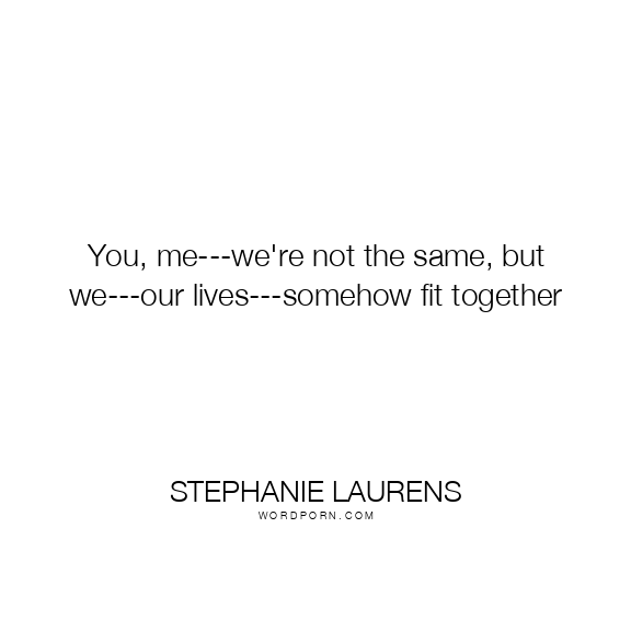 You, me---we're not the same, but we---our lives---somehow fit together