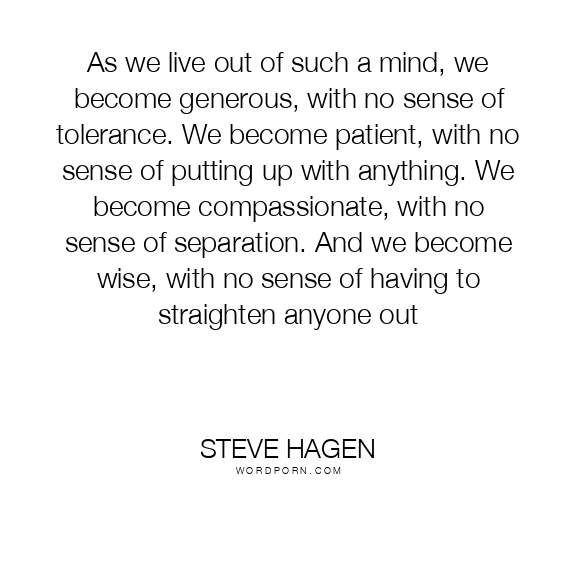 As we live out of such a mind, we become generous, with no sense of tolerance. We become patient, with no sense of putting up with anything. We become compassionate, with no sense of separation. And we become wise, with no sense of having to straighten anyone out
