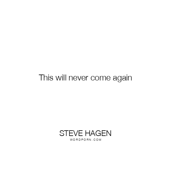 This will never come again