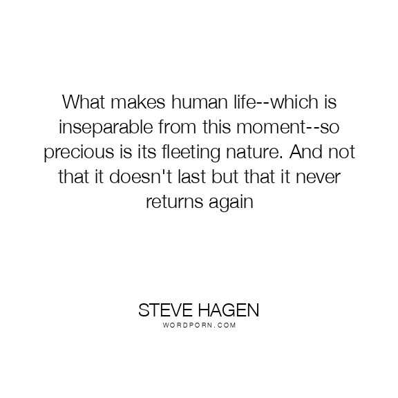 What makes human life--which is inseparable from this moment--so precious is its fleeting nature. And not that it doesn't last but that it never returns again