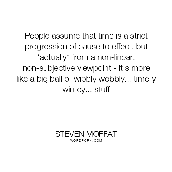 People assume that time is a strict progression of cause to effect, but *actually* from a non-linear, non-subjective viewpoint - it's more like a big ball of wibbly wobbly... time-y wimey... stuff