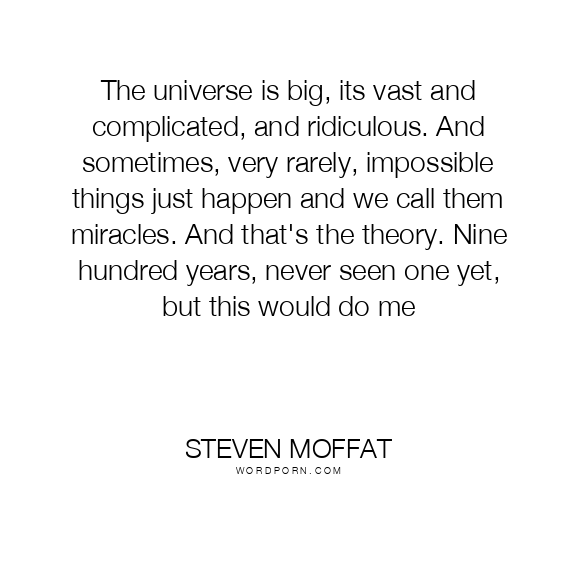 The universe is big, its vast and complicated, and ridiculous. And sometimes, very rarely, impossible things just happen and we call them miracles. And that's the theory. Nine hundred years, never seen one yet, but this would do me