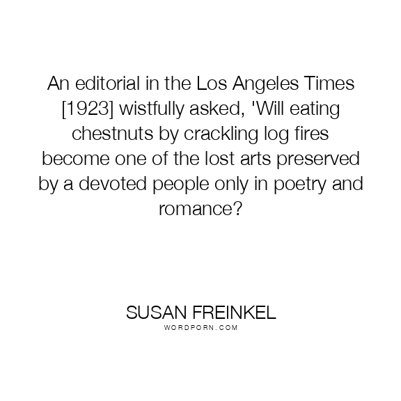 An editorial in the Los Angeles Times [1923] wistfully asked, 'Will eating chestnuts by crackling log fires become one of the lost arts preserved by a devoted people only in poetry and romance?