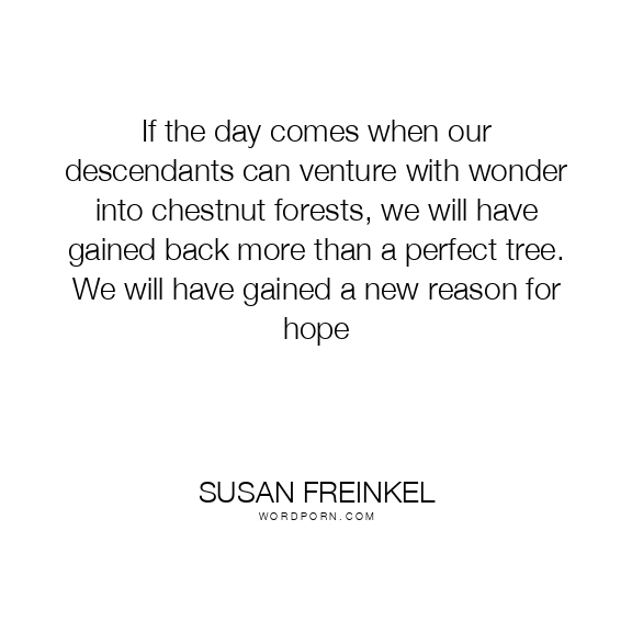 If the day comes when our descendants can venture with wonder into chestnut forests, we will have gained back more than a perfect tree. We will have gained a new reason for hope