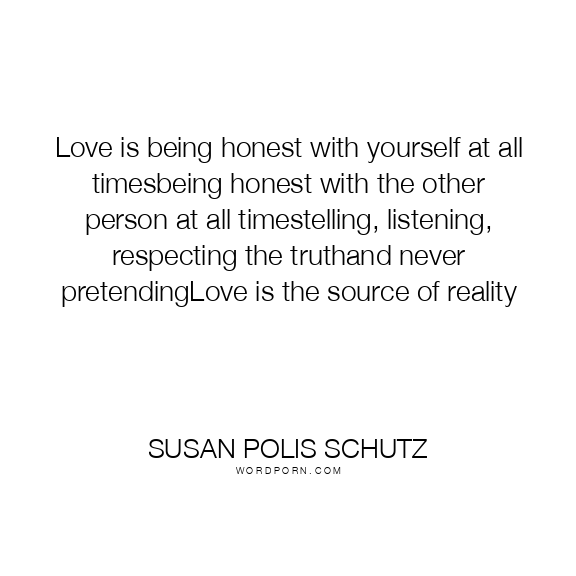 Love is being honest with yourself at all timesbeing honest with the other person at all timestelling, listening, respecting the truthand never pretendingLove is the source of reality