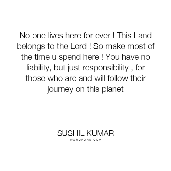 No one lives here for ever ! This Land belongs to the Lord ! So make most of the time u spend here ! You have no liability, but just responsibility , for those who are and will follow their journey on this planet