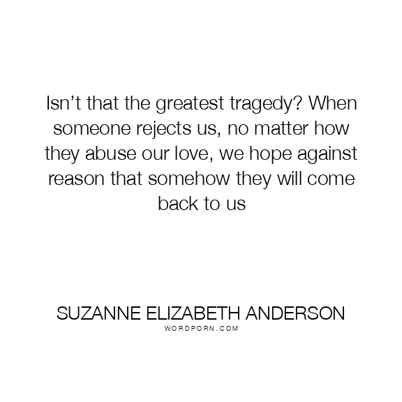Isn’t that the greatest tragedy? When someone rejects us, no matter how they abuse our love, we hope against reason that somehow they will come back to us