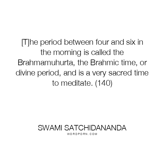 [T]he period between four and six in the morning is called the Brahmamuhurta, the Brahmic time, or divine period, and is a very sacred time to meditate. (140)