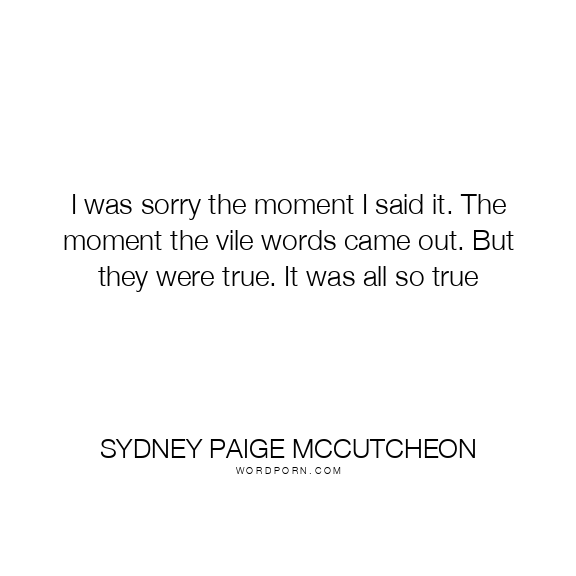 I was sorry the moment I said it. The moment the vile words came out. But they were true. It was all so true