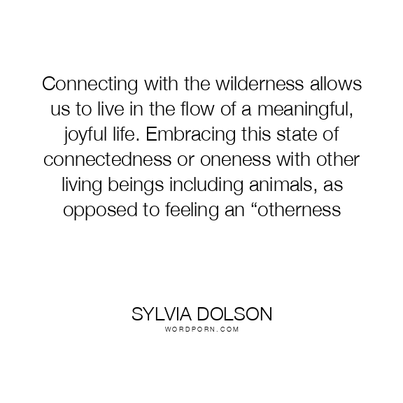 Connecting with the wilderness allows us to live in the flow of a meaningful, joyful life. Embracing this state of connectedness or oneness with other living beings including animals, as opposed to feeling an “otherness