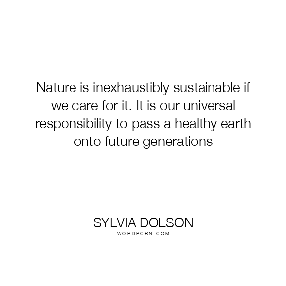 Nature is inexhaustibly sustainable if we care for it. It is our universal responsibility to pass a healthy earth onto future generations
