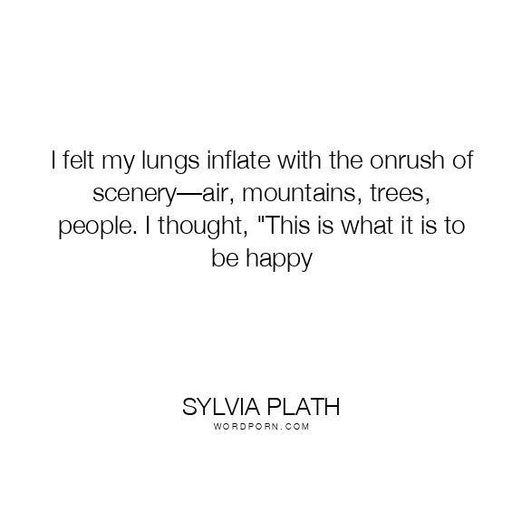 I felt my lungs inflate with the onrush of scenery—air, mountains, trees, people. I thought, "This is what it is to be happy