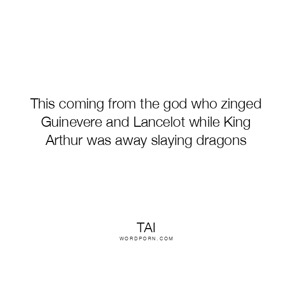 This coming from the god who zinged Guinevere and Lancelot while King Arthur was away slaying dragons