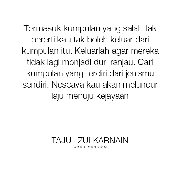 Termasuk kumpulan yang salah tak bererti kau tak boleh keluar dari kumpulan itu. Keluarlah agar mereka tidak lagi menjadi duri ranjau. Cari kumpulan yang terdiri dari jenismu sendiri. Nescaya kau akan meluncur laju menuju kejayaan