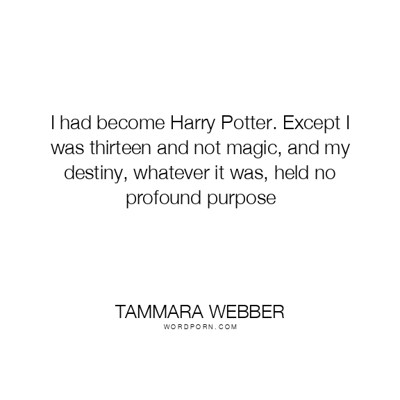I had become Harry Potter. Except I was thirteen and not magic, and my destiny, whatever it was, held no profound purpose