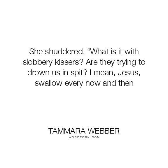 She shuddered. “What is it with slobbery kissers? Are they trying to drown us in spit? I mean, Jesus, swallow every now and then