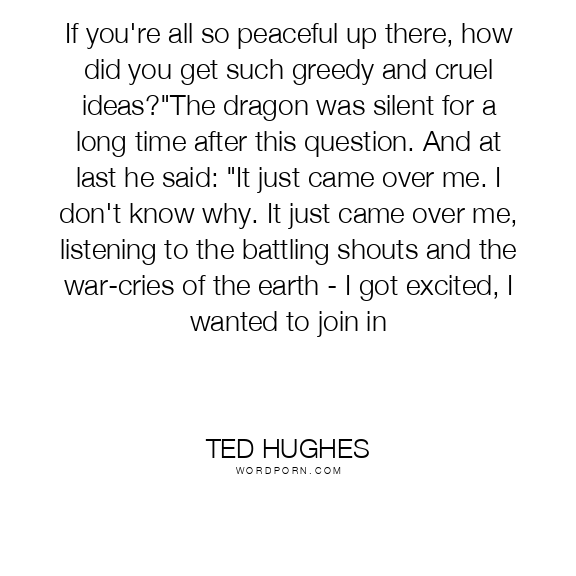 Ted Hughes quote. If you're all so peaceful up there, how did you get such greedy and cruel ideas?