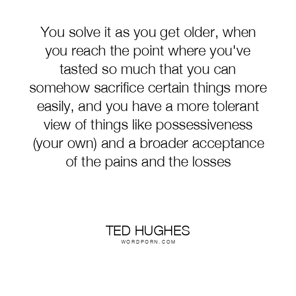 Ted Hughes quote. You solve it as you get older, when you reach the point where you've tasted so much that you can somehow sacrifice certain things more easily, and you have a more tolerant view of things like possessiveness (your own) and a broader acceptance of the pains and the losses