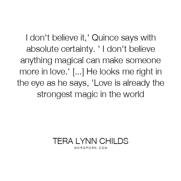 I don't believe it,' Quince says with absolute certainty. ' I don't believe anything magical can make someone more in love.' [...] He looks me right in the eye as he says, 'Love is already the strongest magic in the world