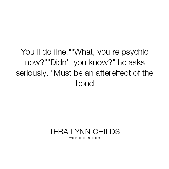 You'll do fine.""What, you're psychic now?""Didn't you know?" he asks seriously. "Must be an aftereffect of the bond