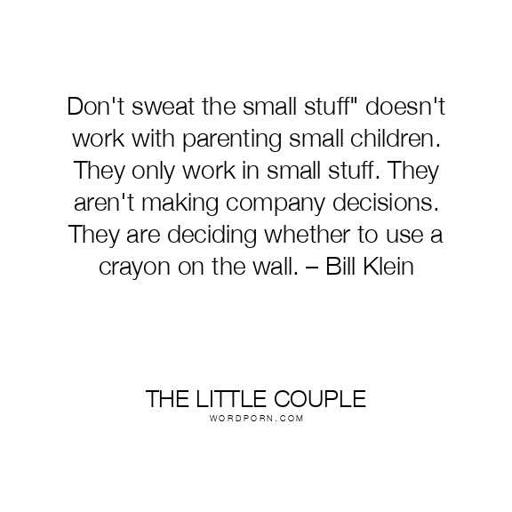 Don't sweat the small stuff" doesn't work with parenting small children. They only work in small stuff. They aren't making company decisions. They are deciding whether to use a crayon on the wall. – Bill Klein