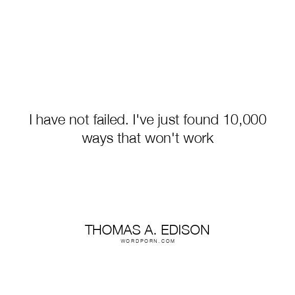 I have not failed. I've just found 10,000 ways that won't work