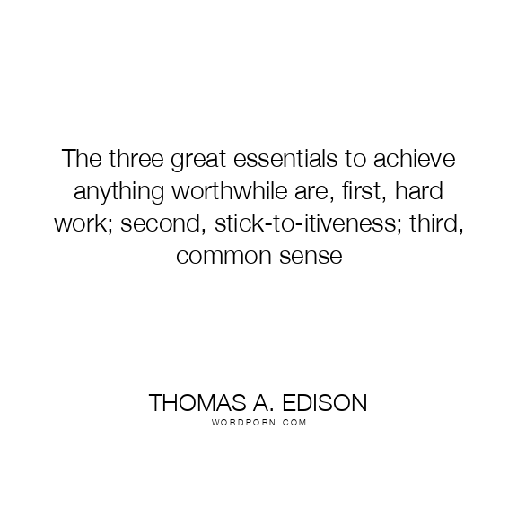 The three great essentials to achieve anything worthwhile are, first, hard work; second, stick-to-itiveness; third, common sense