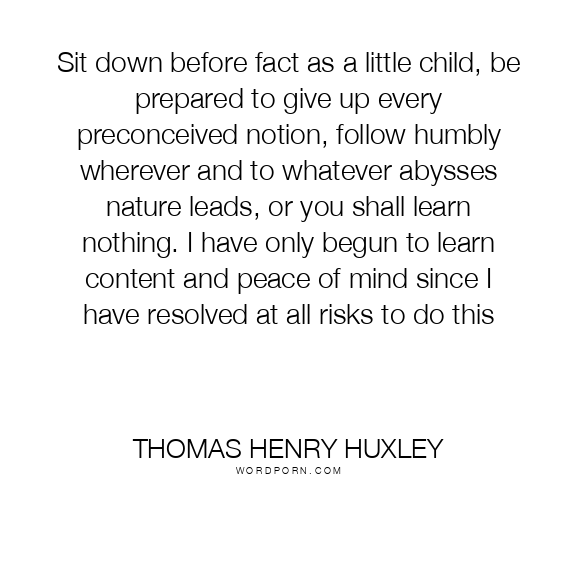 Sit down before fact as a little child, be prepared to give up every preconceived notion, follow humbly wherever and to whatever abysses nature leads, or you shall learn nothing. I have only begun to learn content and peace of mind since I have resolved at all risks to do this