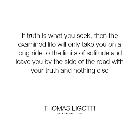 If truth is what you seek, then the examined life will only take you on a long ride to the limits of solitude and leave you by the side of the road with your truth and nothing else
