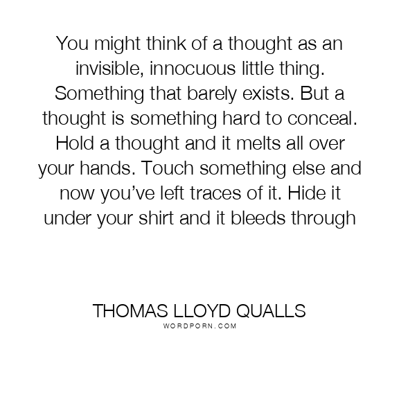 You might think of a thought as an invisible, innocuous little thing. Something that barely exists. But a thought is something hard to conceal. Hold a thought and it melts all over your hands. Touch something else and now you’ve left traces of it. Hide it under your shirt and it bleeds through
