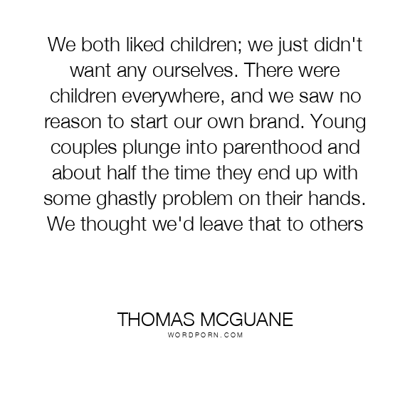 We both liked children; we just didn't want any ourselves. There were children everywhere, and we saw no reason to start our own brand. Young couples plunge into parenthood and about half the time they end up with some ghastly problem on their hands. We thought we'd leave that to others