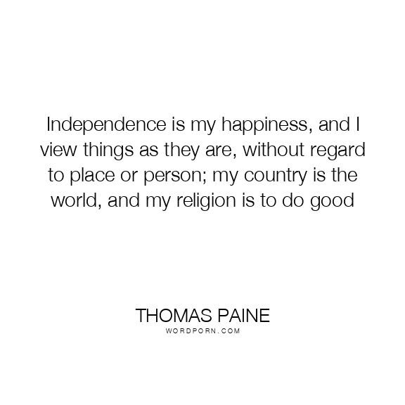 Independence is my happiness, and I view things as they are, without regard to place or person; my country is the world, and my religion is to do good