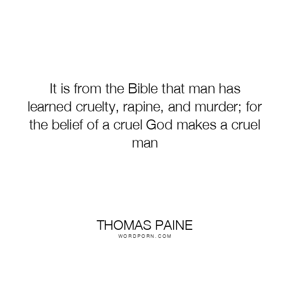 It is from the Bible that man has learned cruelty, rapine, and murder; for the belief of a cruel God makes a cruel man